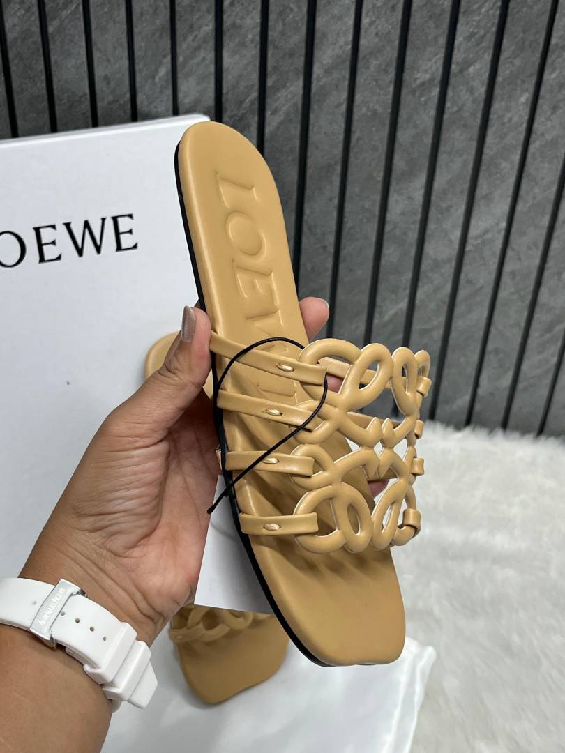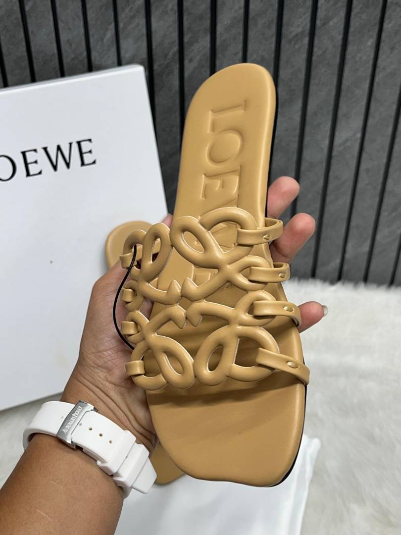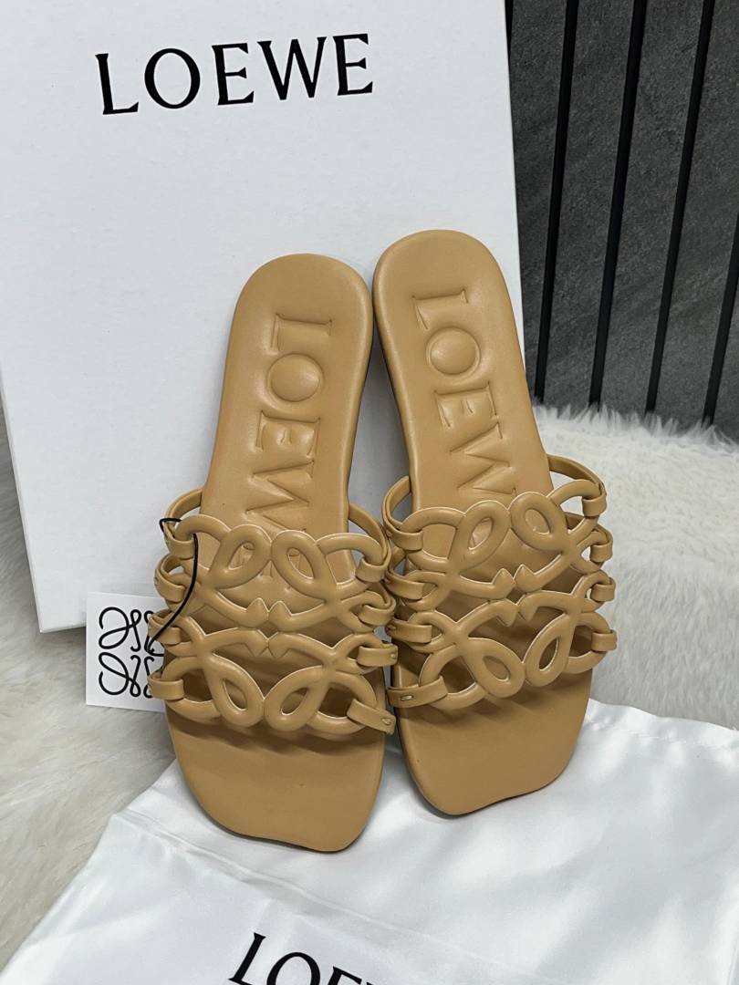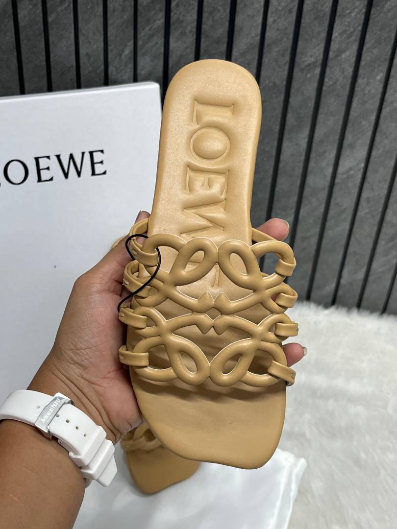 Loewe Beige Petal Anagram Slides For Women With Original Box And Dust Cover