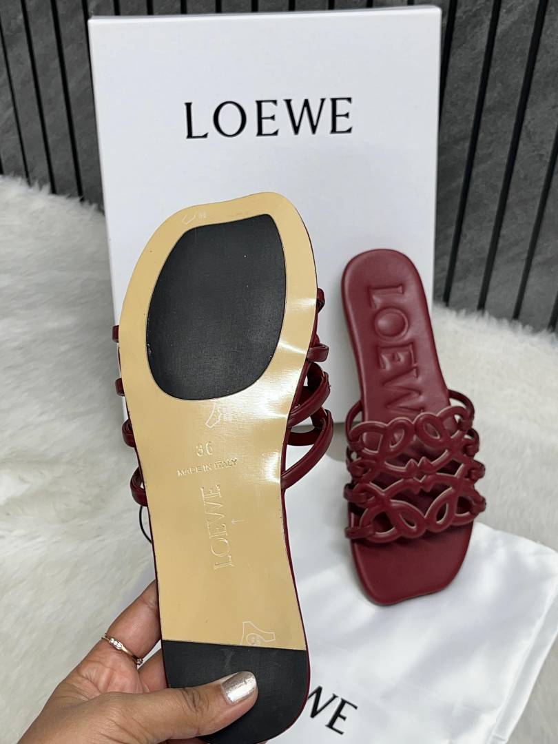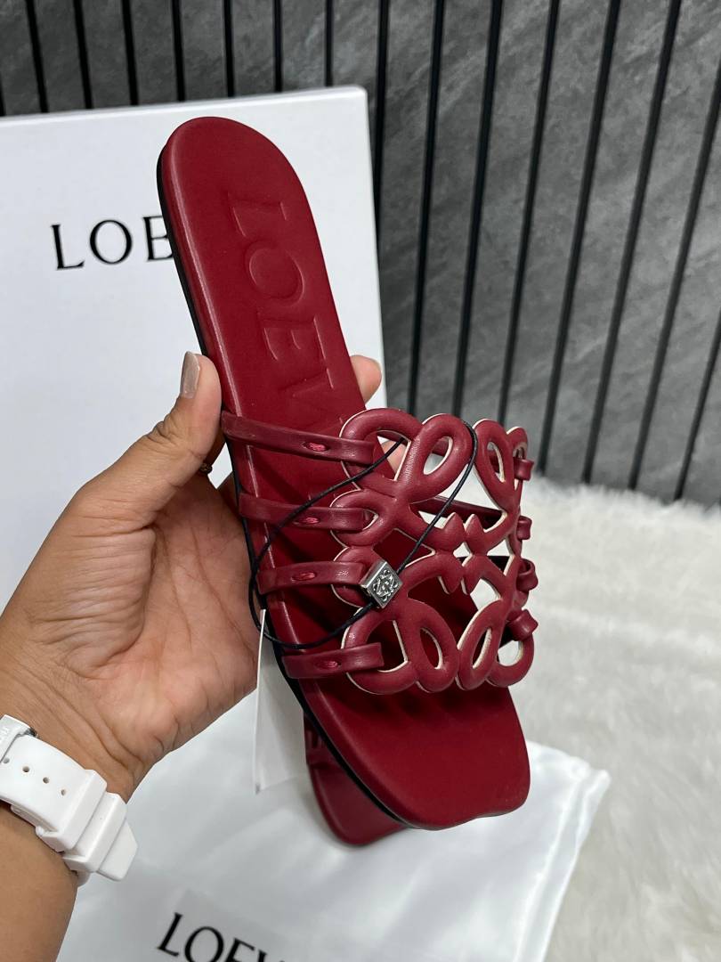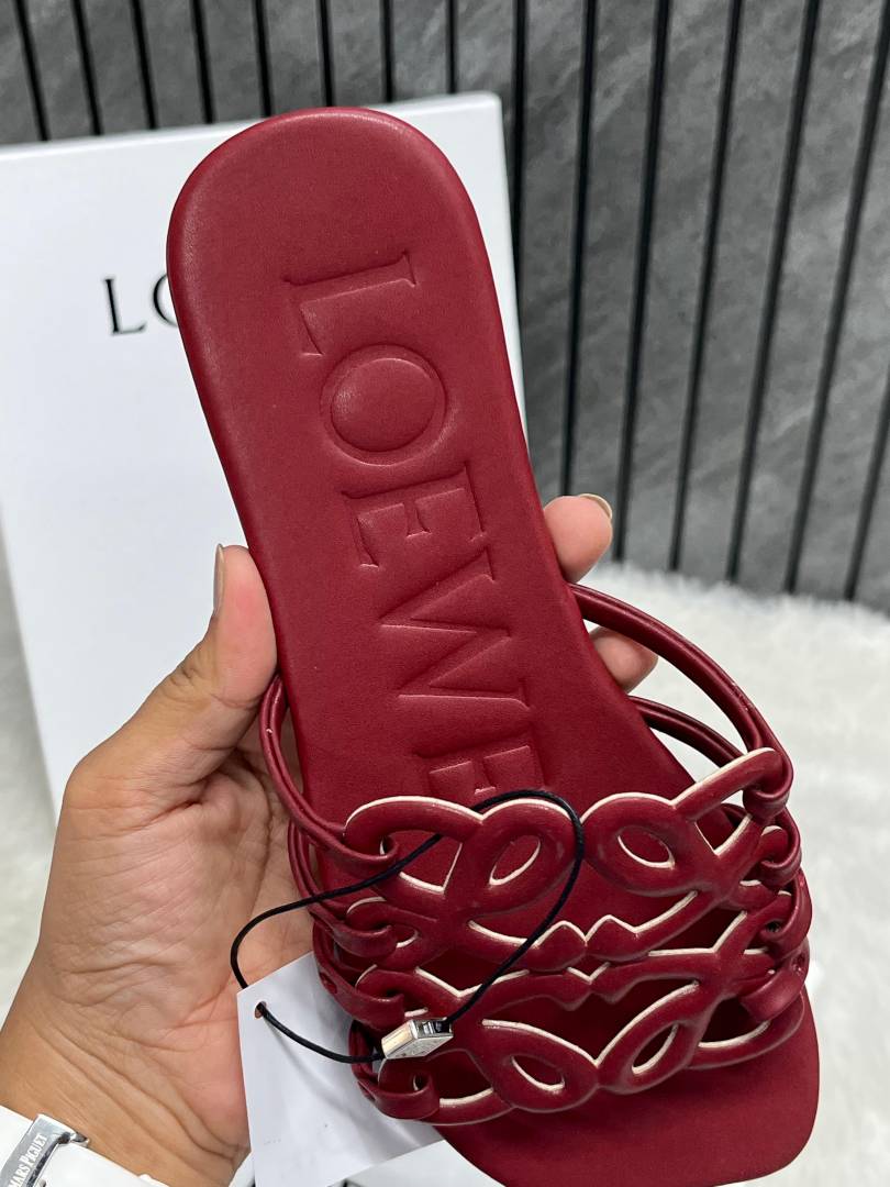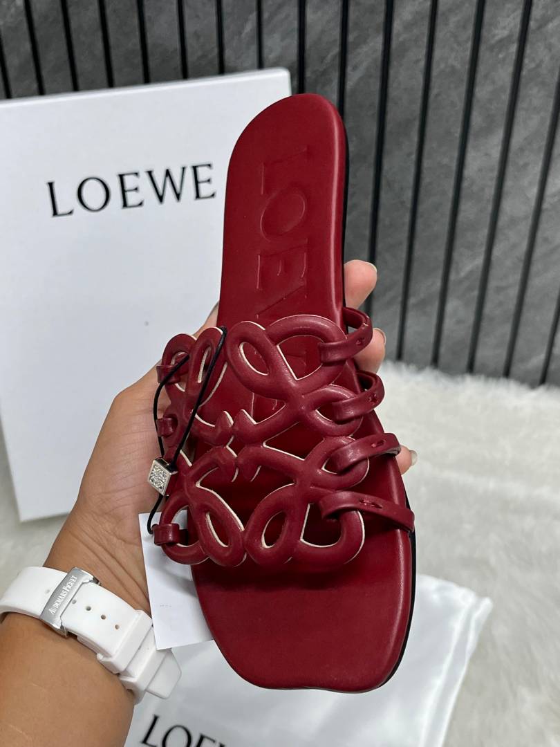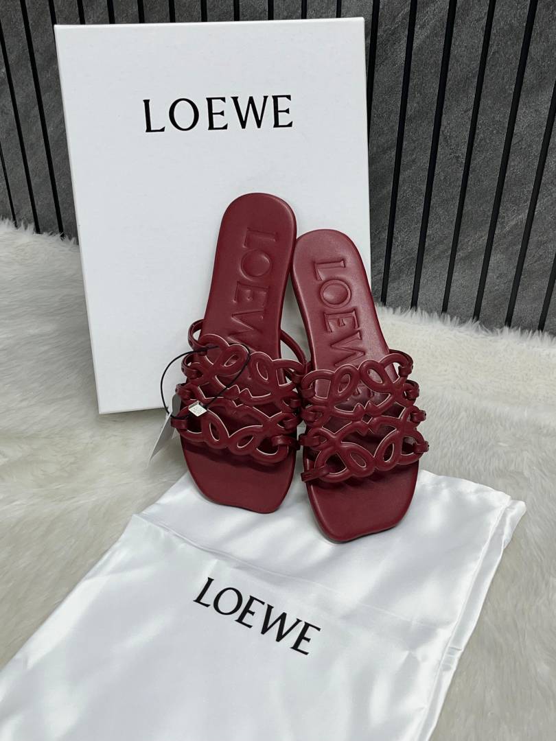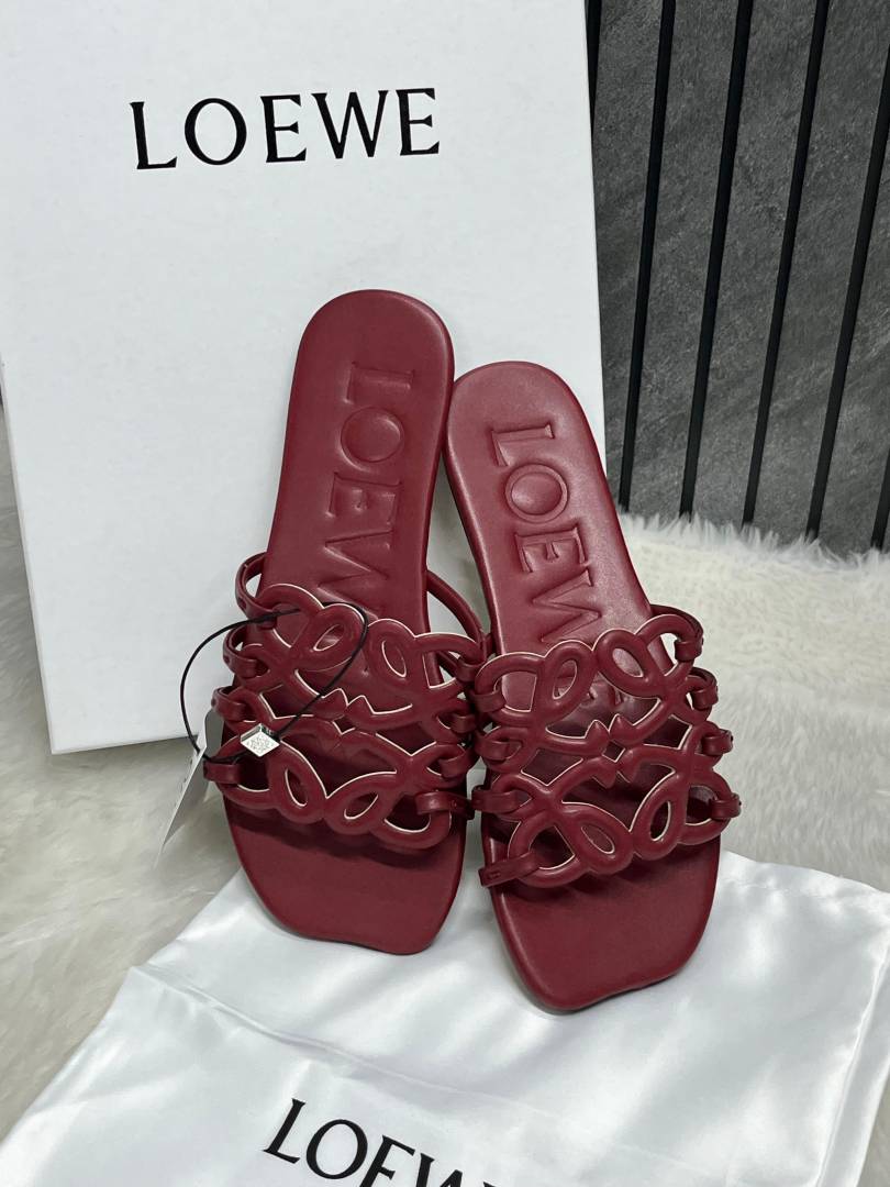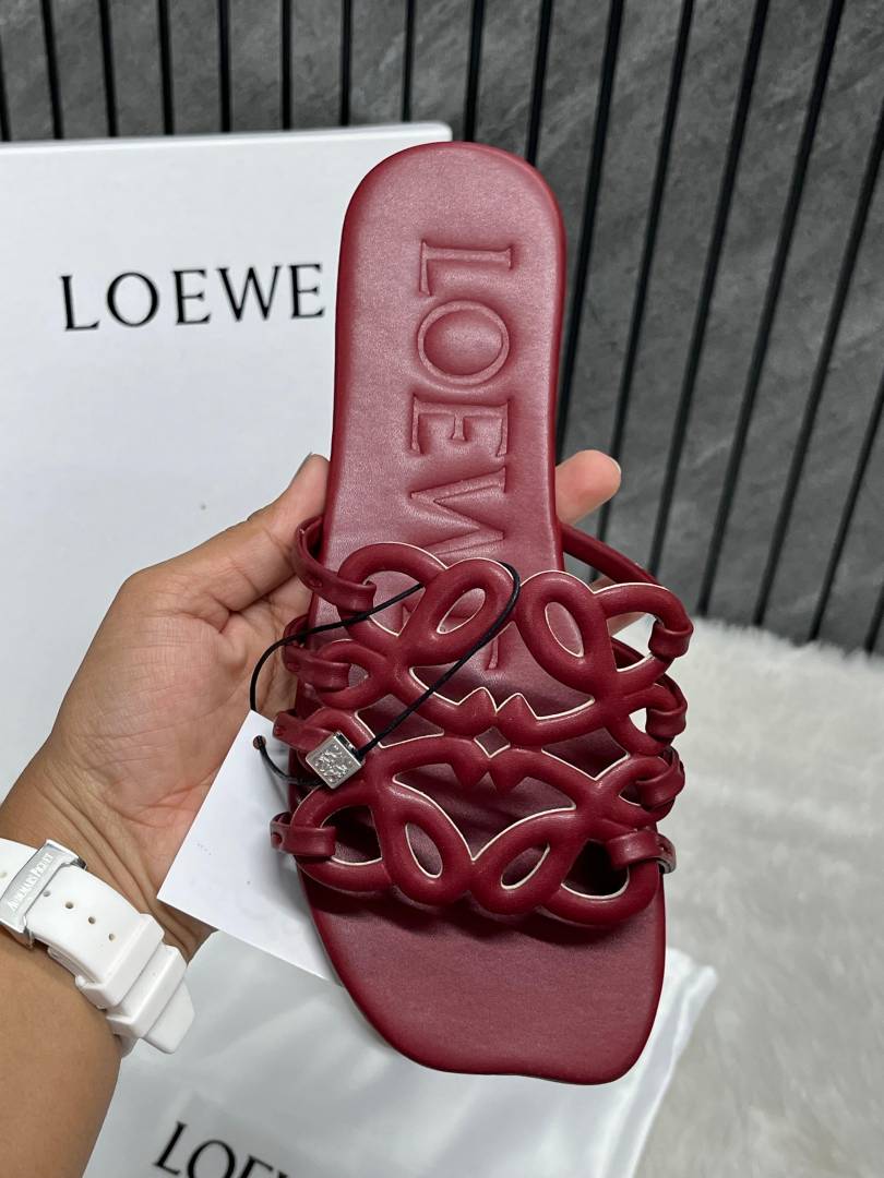 Loewe Red Wine Petal Anagram Slides For Women With Original Box And Dust Cover